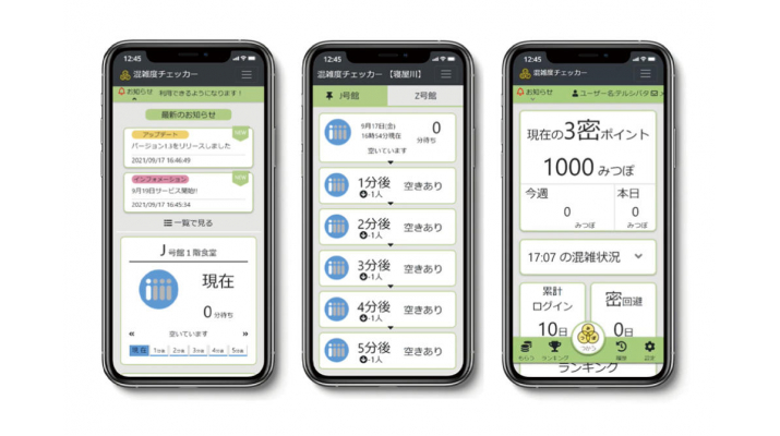 IoTで食堂の混雑度を推定し、混雑していない場合に食堂で使えるポイントが貰えるサービス。