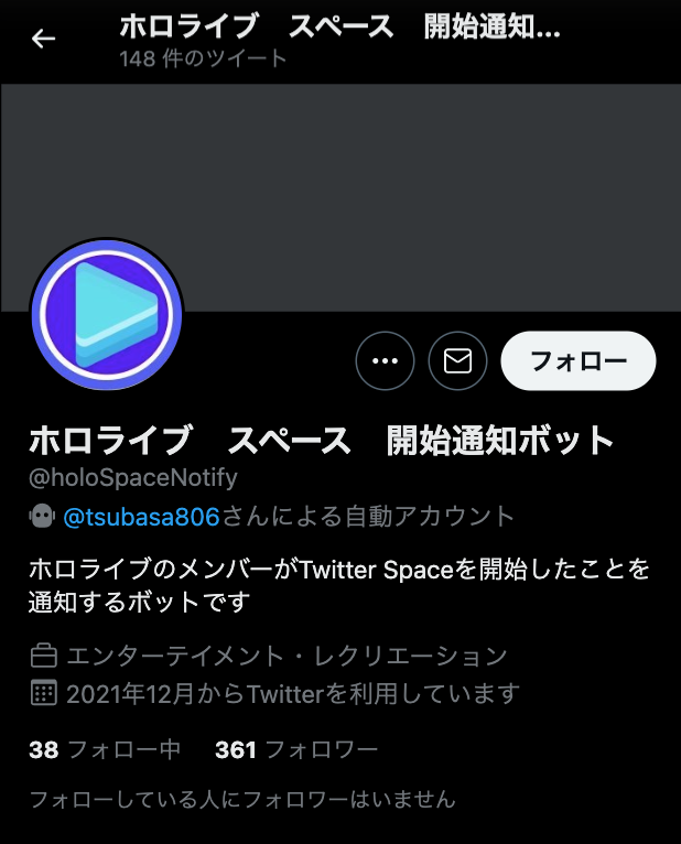ホロライブJPのメンバーがTwitterスペースを開始するとDiscordまたはTwitterで開始したことを通知するメッセージを投稿するボット